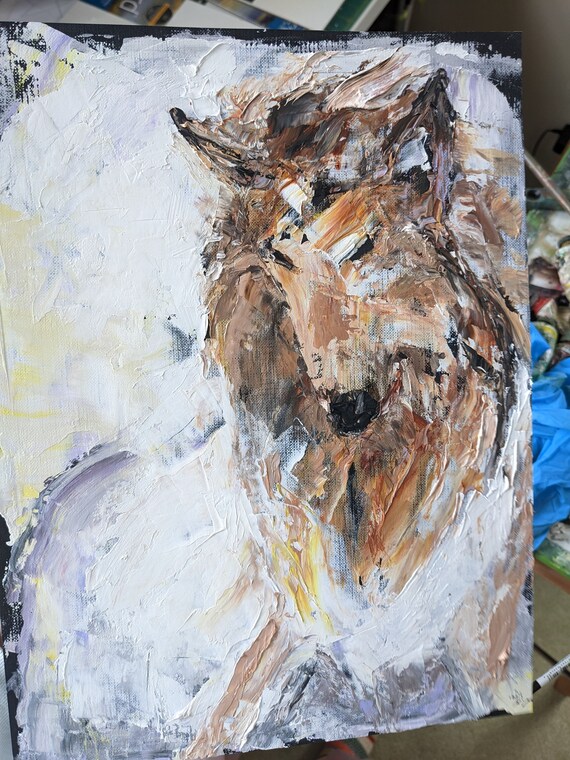 Rough Collie Snow Portrait Original Oil Painting On Gesso Etsy